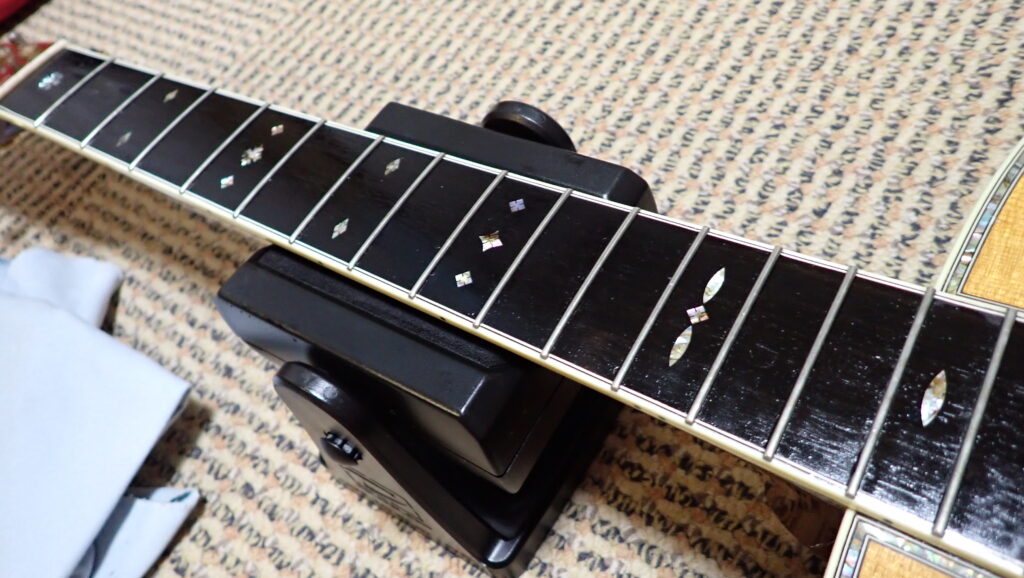指板はレモンオイルをしみ込ませます。
