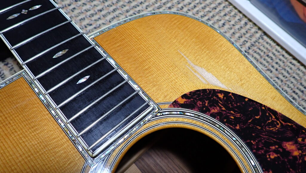 martin特有のバインディング剥がれと弦高高くなってきたので調整が必要になりました。千葉県に送ってメンテしてもらうのですが、ぼちぼちと感じました。長く使うものなので車検みたいなもんです。