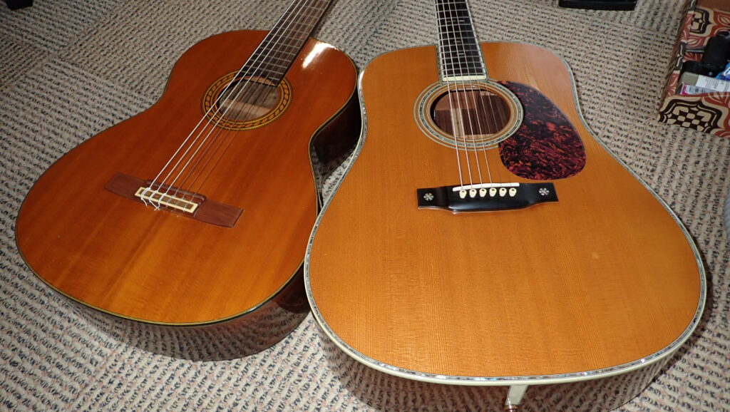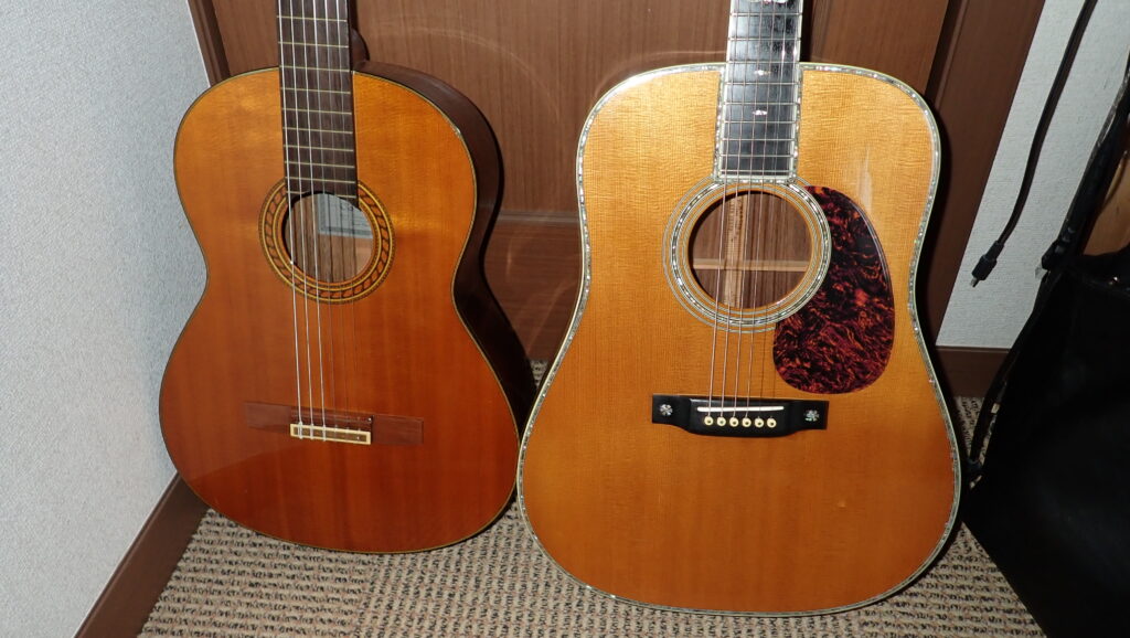 見た目はアコギとクラシックですが、値段差は100万円以上あります・・・!