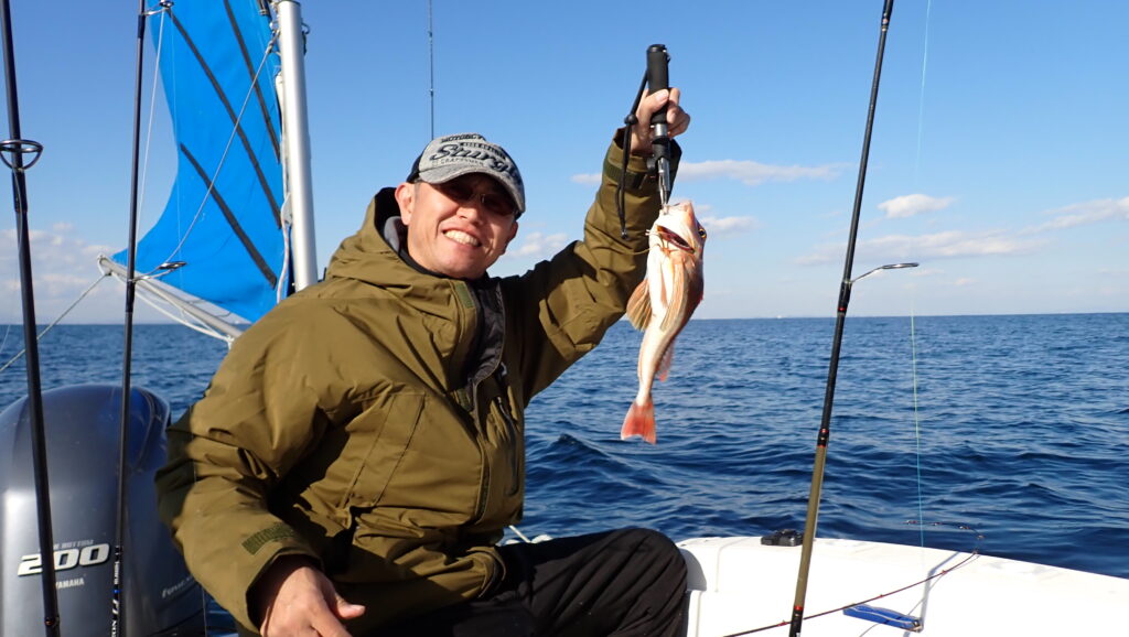 真鯛は5枚釣れ、ホウボウもデカイのばかりでした。やはりこの釣りが面白い!