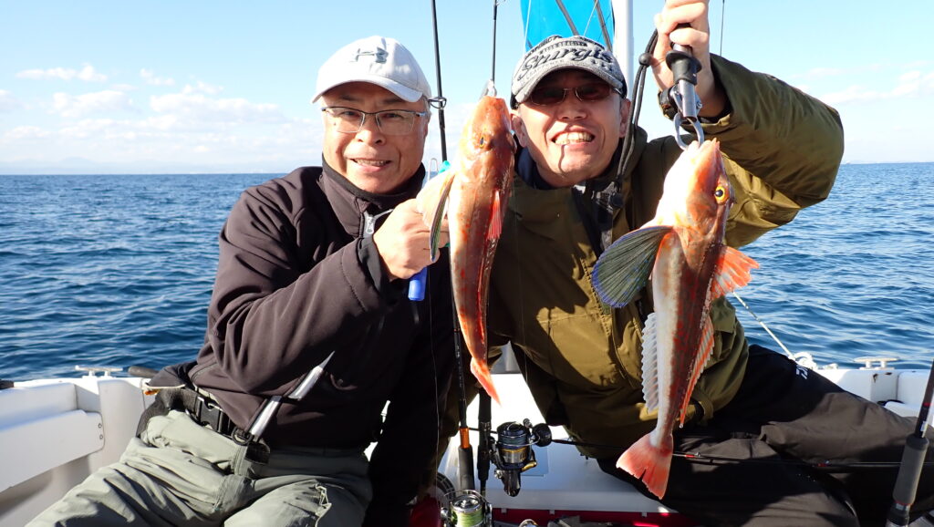 真鯛、ホウボウ、ガシラ、ヒラメと今回も魚種豊富です!いい時期ですね。水温もまぁ大丈夫。