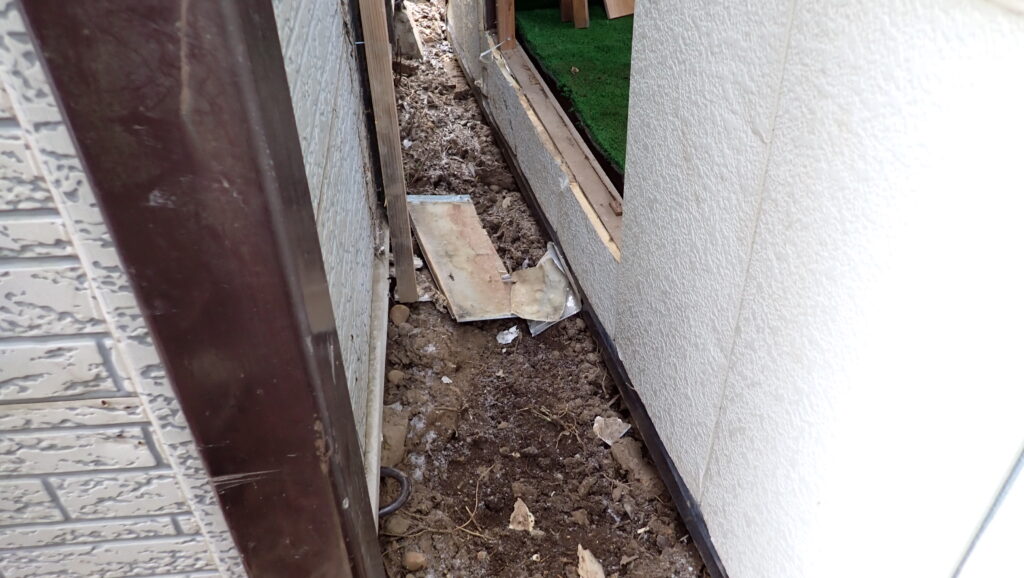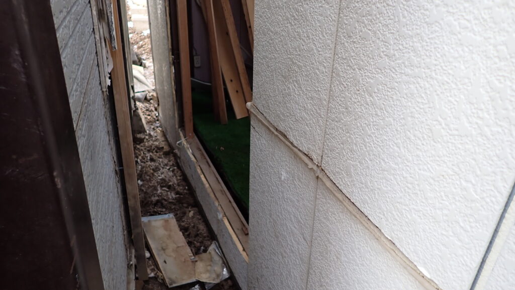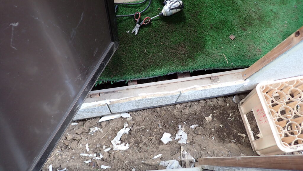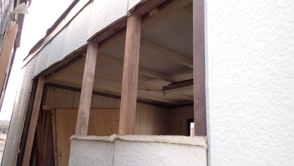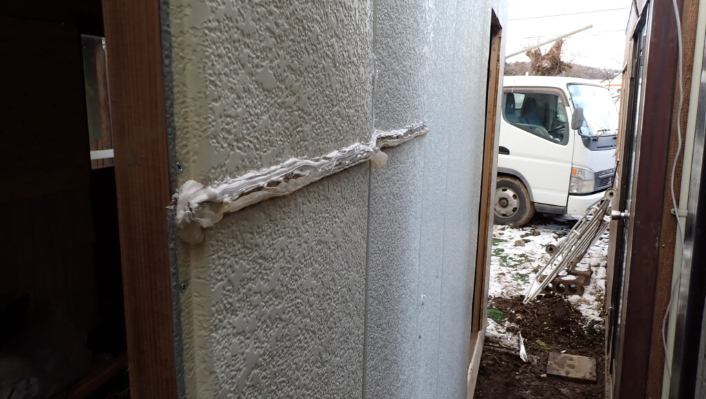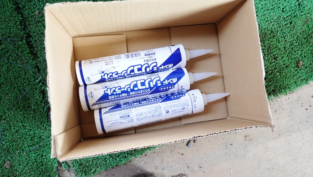 外壁もバリバリグラインダーで削って差し替えしたので、シーラントで雨対策をしました。