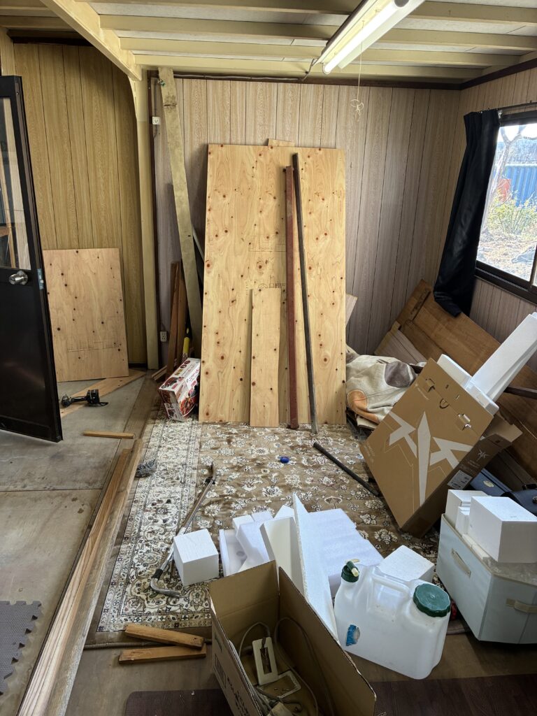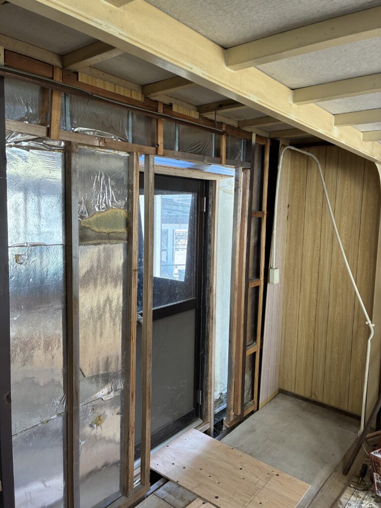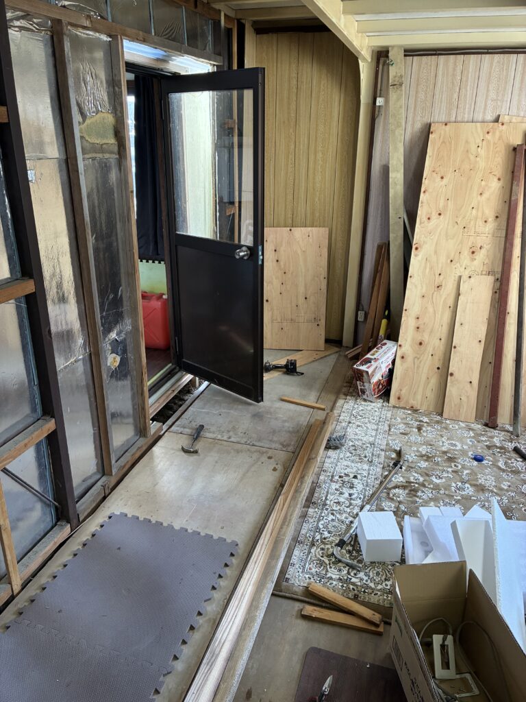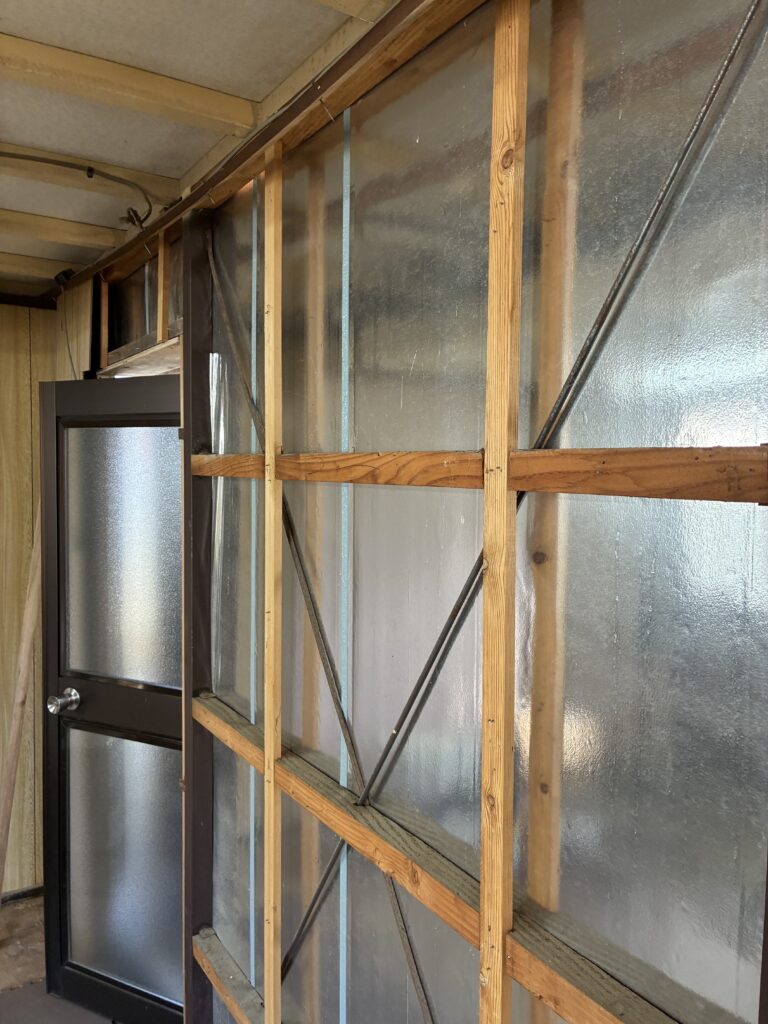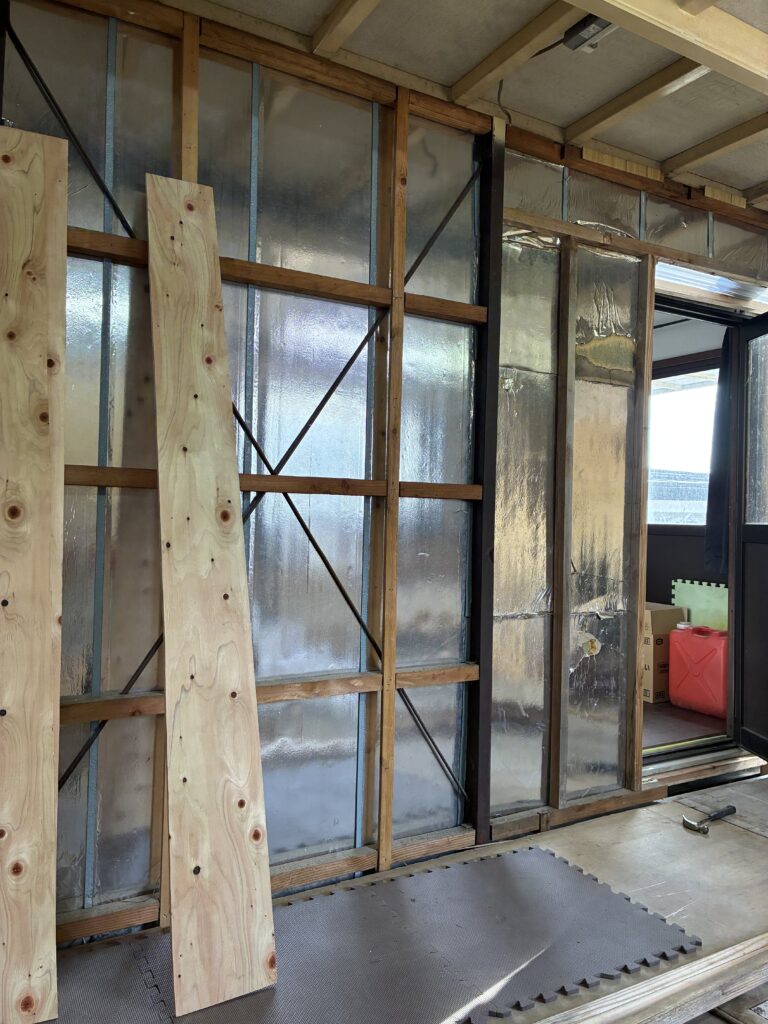 本当は断熱材を入れて石膏ボードで1面仕上がる予定でしたがそこまでいかず