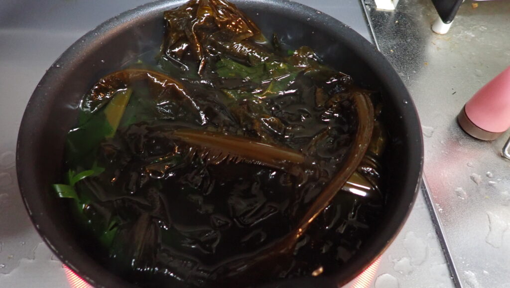 差し入れで三陸のワカメをクーラーいっぱい貰いました。1/5くらい夕飯のおかずにしました。旨いな!